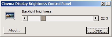 The Cinema Display Control Panel is the first tool for Windows, that supports setting the backlight brightness of the TFT-Panel in Apple's displays directly in hardware.